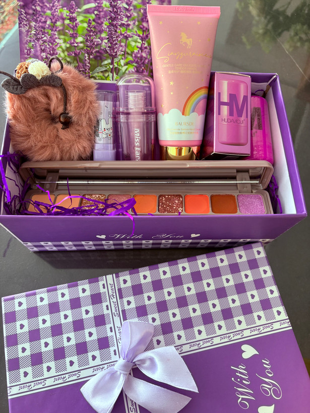 این پک شامل؛لیپ گلاس،بالم لب،کش مو،ماسک صورت،کرم دست تینت ژله ای و سایه هست